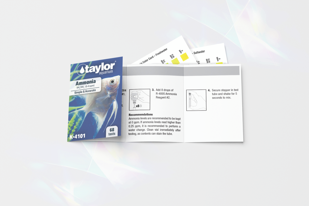 | Ammonia | Protect aquatic life from harmful ammonia toxicity. Taylor Ammonia tests provide accurate readings to help maintain a clean and healthy aquarium environment. | Salicylate method | 0-8 ppm NH₃/NH₄⁺ |