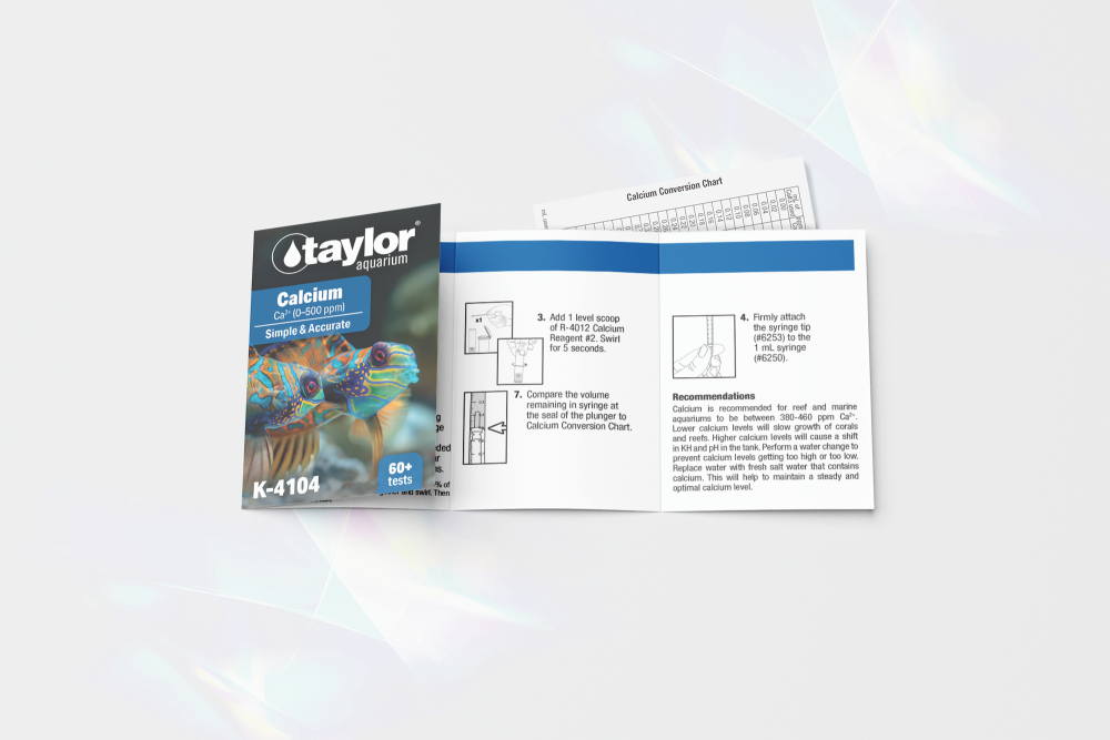Taylor® K-4104 Calcium Kits provide precise measurements of calcium hardness in aquariums. Essential for coral growth and overall water stability, it ensures optimal calcium levels in both freshwater and saltwater tanks.