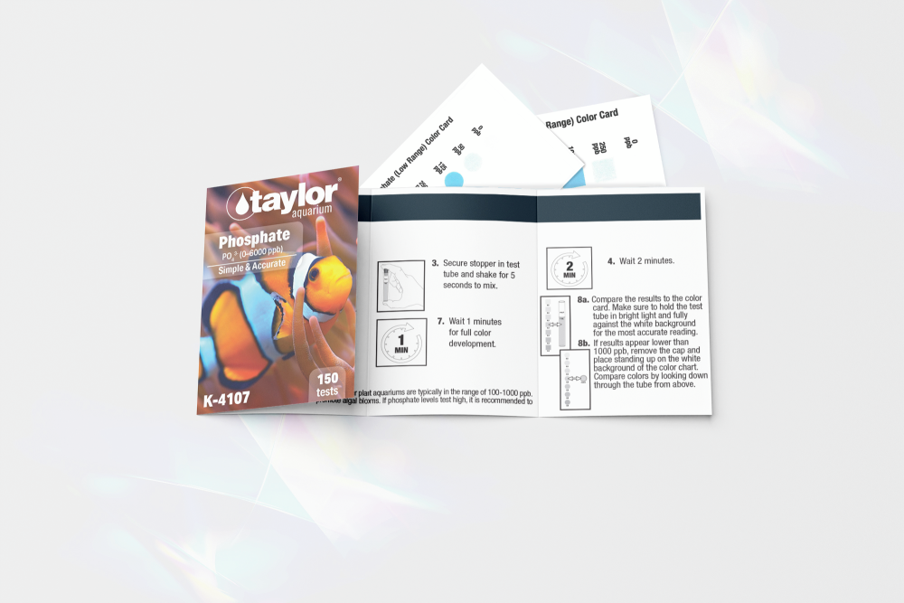 Taylor® K-4107 Phosphate Kits measure phosphate levels in aquariums, preventing unwanted algae growth to help maintain a clean and balanced aquatic environment for both freshwater and saltwater tanks.